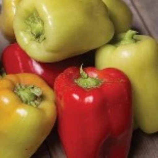 85 days. Capsicum annuum. Open Pollinated. Garden Sunshine Pepper. The plant produces heavy yields of 4″ long by 4″ wide sweet bell peppers. Peppers turn from creamy yellow to orange, to red when mature. The plant has green leaves and green stems with white flowers. The peppers cCan be harvested at any color stage. Excellent for salads or pickling. A variety from the USA.